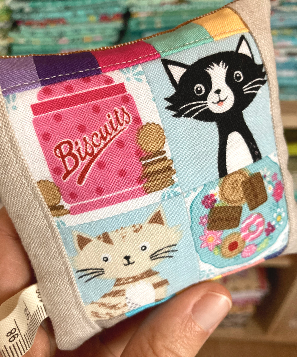 Ich verschenke sie. Zum Beispiel an handarbeitsbegeisterte Frauen, mit denen ich mich einmal im Monat zum gemeinsamen Austausch treffe. Darunter sind auch Katzenfans. Weshalb das Katzen-Nadelkissen als erstes eine neue Besitzerin gefunden hat. 😀