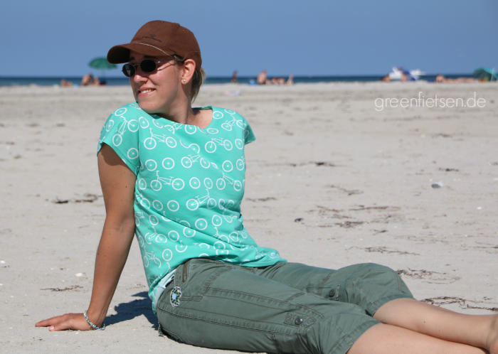Wahnsinn, wie unterschiedlich das Shirt ausfällt – je nachdem, welchen Jersey man nimmt. Gleiche Größe, gleicher Schnitt wie beim Fahrradshirt und doch um einiges weiter und luftiger. Aber im Sommer bei dreißig Grad im Schatten mag ich es eh nicht so knalleng. Da ist ein lässiges Shirt aus einem weich fallenden Stoff wie diesem von Cherry Picking gar nicht so verkehrt.