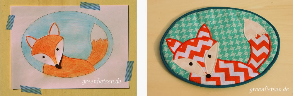 Es ist jetzt ungefähr ein Jahr her, als Emma (Frühstück bei Emma) zum Stoffabbau einlud und die Aufgabe stellte, ein Tischset zu nähen. Wozu brauche ich Tischsets, habe ich mich gefragt und beschlossen, stattdessen lieber einen Mug Rug zu nähen. So einen kleinen Tassenteppich für meinen heißen Tee konnte ich auf meinem Schreibtisch gut gebrauchen. Vielleicht lag es am Herbst, ganz bestimmt aber daran, dass in der Kreativwelt auf einmal überall Füchse auftauchten – Ich wollte unbedingt einen Mug Rug mit Fuchsmotiv haben. Also zeichnete ich einen kleinen Fuchs auf Papier, tüftelte, experimentierte, applizierte und heraus kam dieser Mug Rug, das du auf dem Foto siehst.